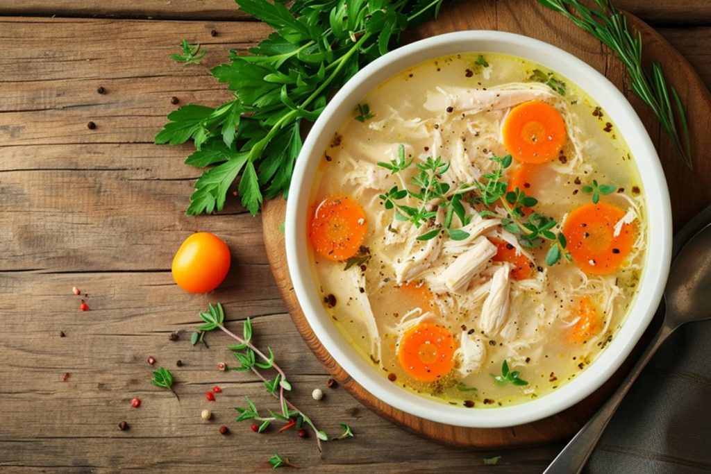 Como preparar caldo de galinha antigripal e rico em proteínas e vitaminas de vegetais de folhas verdes